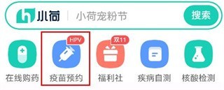 1、打开小荷健康app,进入首页点击“疫苗预约”。