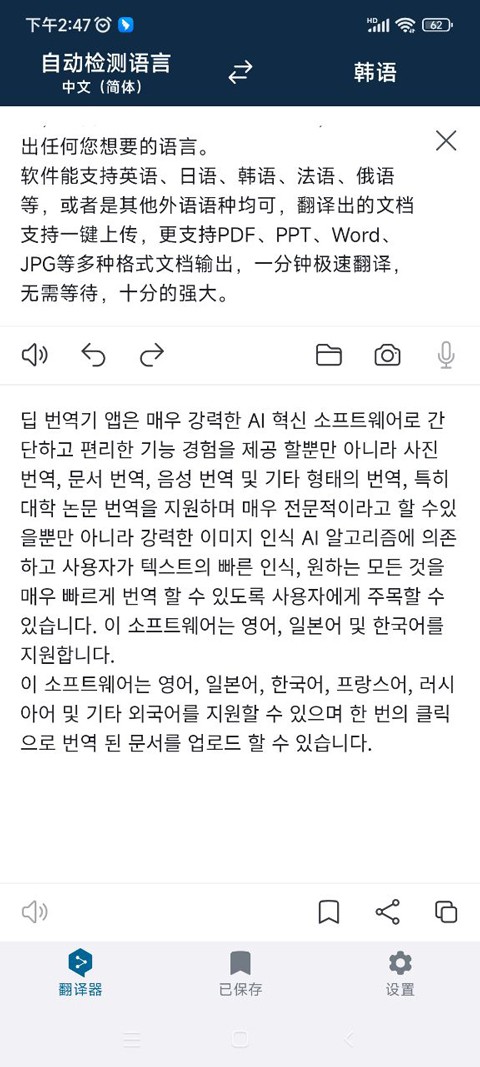 6、还支持用户查看翻译的历史记录并进行删除和保存操作。
