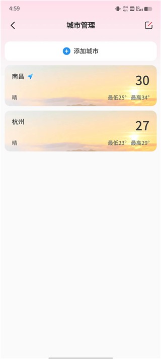 添加成功之后你选择的城市便会展示在这里,如果想要删除点击右上角编辑进行删除