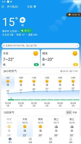 1、首先第一步我们肯定是需要去打开软件的,进入到软件当中以后我们可以直接看到的就是【天气】,在这里看到的就是所有关于天气的内容,比如说15天的天气,再比如湿气等等,你们想要了解到所有的天气的状况的话,就在这里看到就可以了。