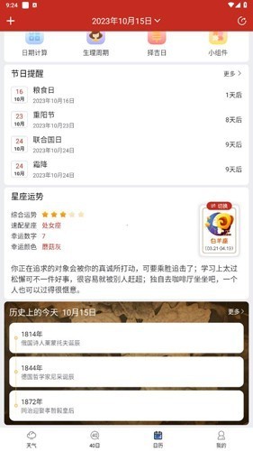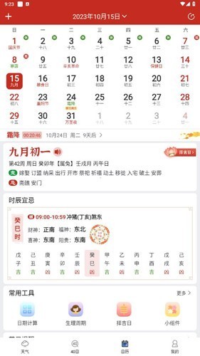 3、【日历】的话也就是万年历的功能,你们就可以看到所有的关于日历的相关的数据。也可以看看今天是不是适合做什么等等,当然也都是最基础的,你们可以作为参考。