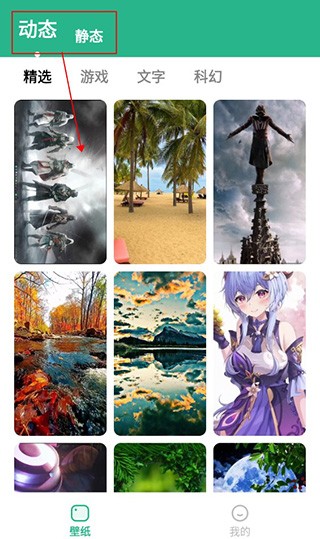首先用户在进入软件之后,可以点击上方的动态,再在下方的壁纸内选择一个自己喜欢的壁纸进行点击。