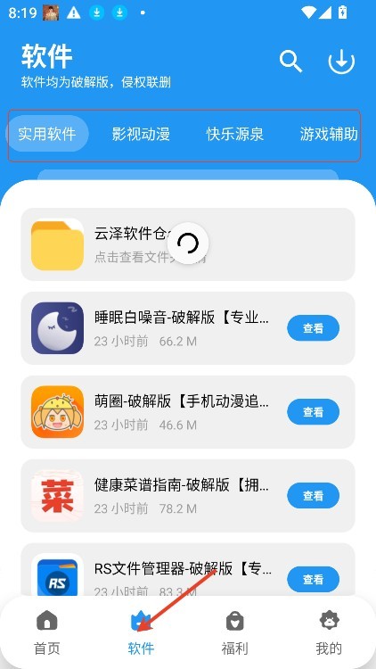 1、打开云泽软件仓app,进入软件板块,可以直接筛选软件分类。