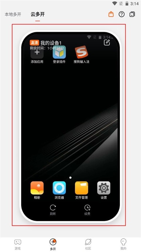 3、点击中间的云手机进入到云手机内部