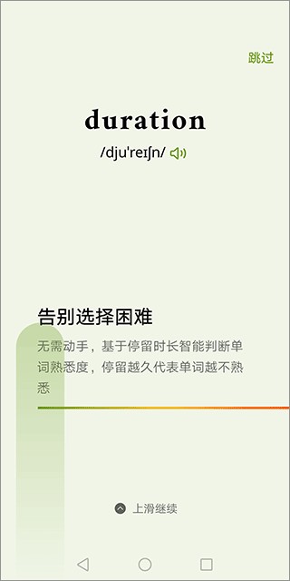 2、无需动手,基于停留时长智能判断单词熟悉度,停留越久代表单词越不熟悉