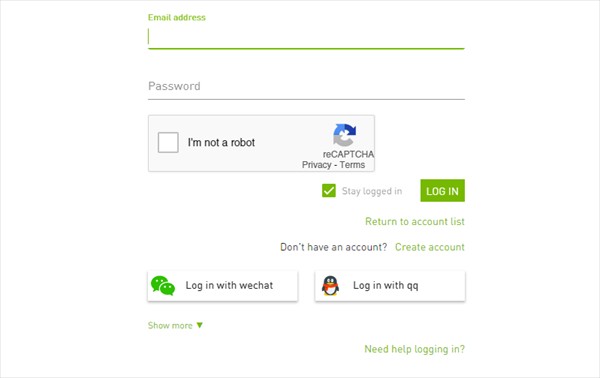 9、下载并安装Geforce Now程序完成后,首先登录英伟达账户。