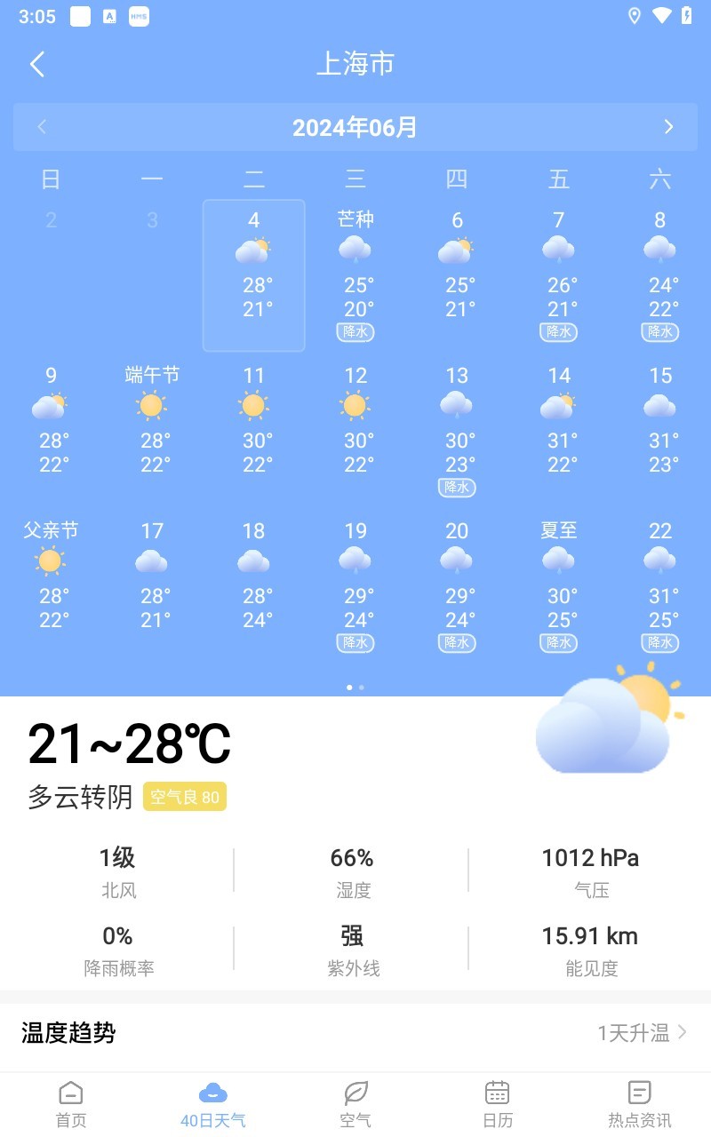 3、40日天气界面可以查看40日内的天气