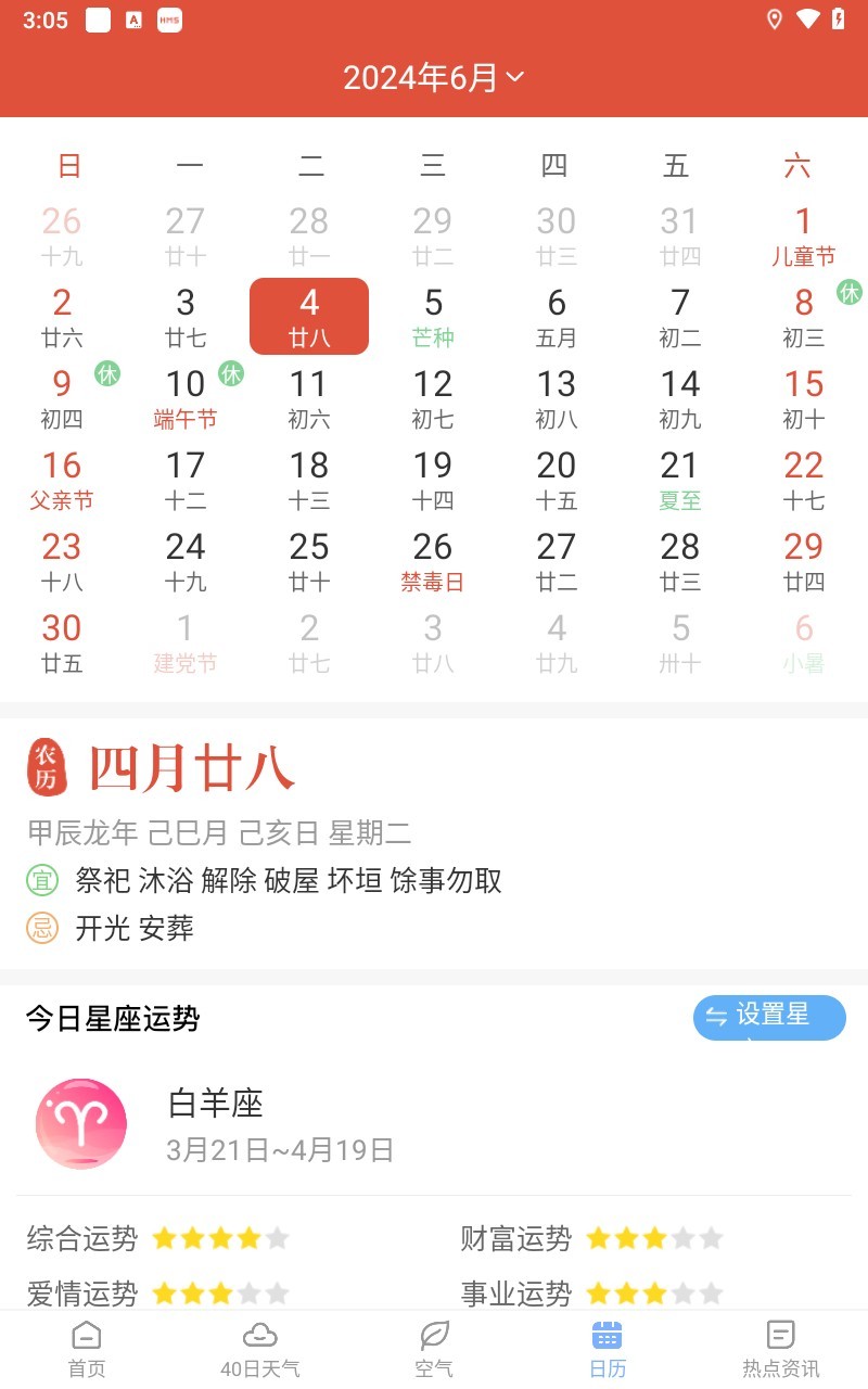 5、日历界面可以查看当日运势