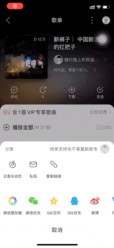创建自己的歌单,还可以分享给自己的朋友。
