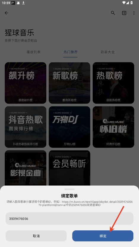 2.将酷我ID输入框内,点击绑定即可。
