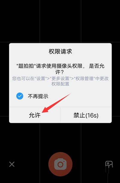 2、然后在摄像头权限请求提示里点击允许。
