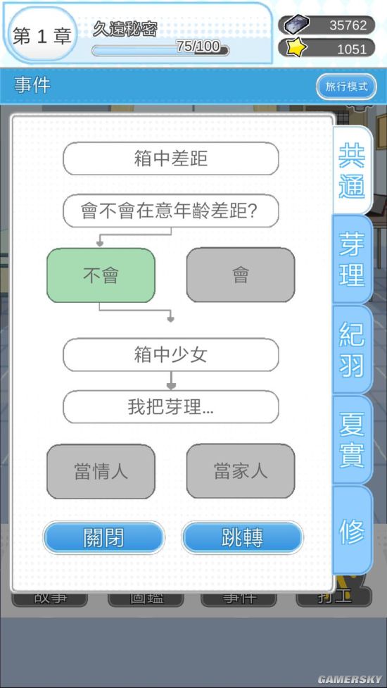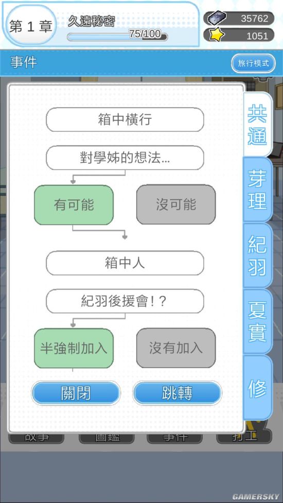 旅行跳到基础那里,根据你要走的线做不同的选择,然后跳转就会进到不同的线