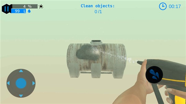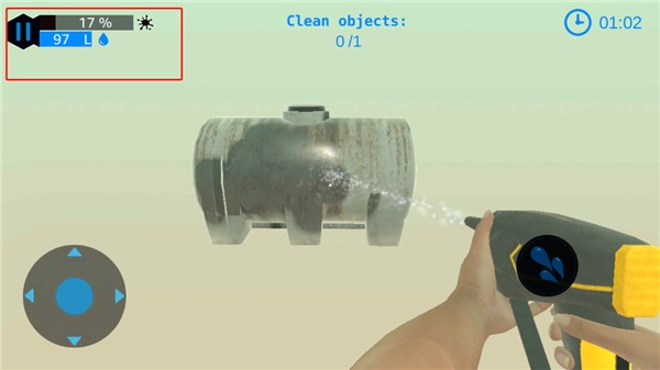 4、玩家可以按右边的水滴键,清理眼前物体,左边控制360的视角,你需要360无死角清理眼前的物体