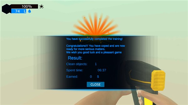 3、里面为玩家提供了关卡任务,玩家需要清理眼前的物体,点击关闭