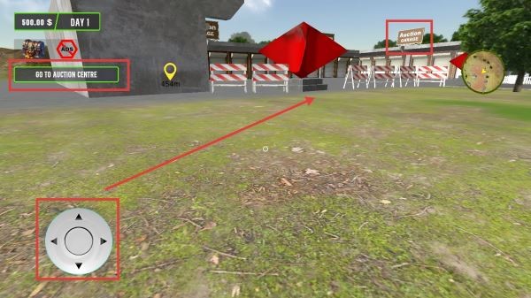 1、滑动左下角摇杆移动角色,根据左上方提示,朝【AuctionGarage】方向进发,准备好三寸不烂之舌进行激烈竞拍吧。