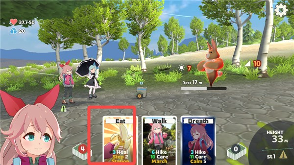 1、进入山札二合处中,游戏开始需要在三张卡牌中选择一张。