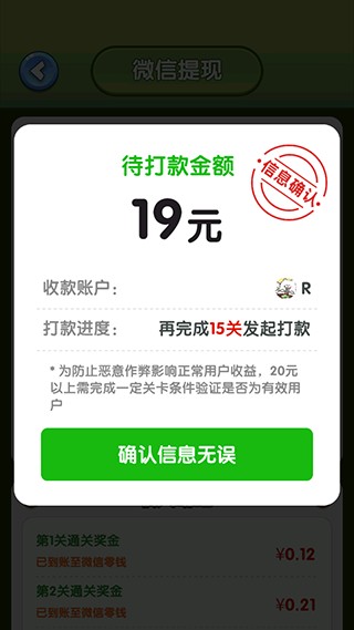 4、完成关卡即可获得现金奖励