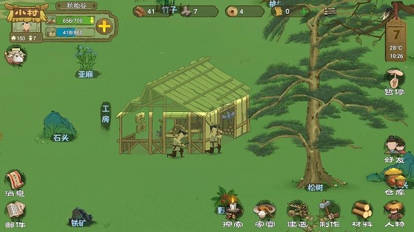 而前期存粮不多,很容易就遇到第一次粮食危机。劳动力都喊着要穿衣服,穿衣危机。消息一直提示要两顶草屋,住房危机。因为前期没工具,事半功倍,个个喊着休息,劳动力危机。【衣食住行】全了