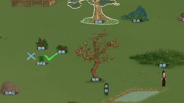 分配一对小儿/妇女。搭配采集浆果,这个组合就不用去动它,雷打不动那种,这是粮食的保证,再省不能省口粮。(而且伴生的紫桃可以恢复精力,左上角蓝色的条。可以卖给商人10铜币一个属于硬通货)(粉桃还能开家宴)【跟其他生存游戏不一样,在这里浆果还蛮赚的】