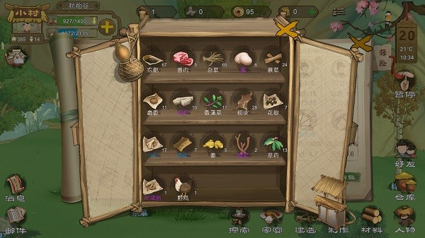 野菜:5颗野菜能做一碗野菜汤,肉在前期全靠豺狼来袭,肉汤是不能稳定得到的前期就是整天吃野菜过活。这些野菜汤放到家宴上影响了晚上打野的收入,人口的增加。