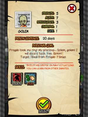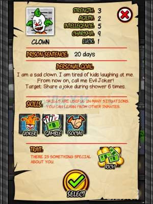 4、玩法之外,此游戏最有趣的是人物设定,一大批经典影视剧中的角色都会出现在监狱里:丑角八两金、指环控比尔博、帅大叔杰森斯坦森甚至是不知道哪里来的少林武僧和倒霉总统 ,100多个角色光是看一遍就能叫你笑出声来。而每天必须捱过的洗澡“捡肥皂”环节,更是将这种恶搞发挥到了极致,正因为这样欢乐,所以这款游戏才在全世界范围内拥有大批粉丝。