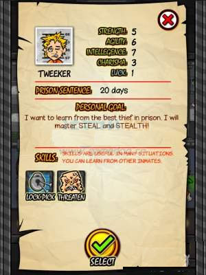 6、TWEEKER,专职盗窃和恐吓,罪行不小但是刑期也比较短所以想要在监狱中有一番作为的玩家不建议使用这个任务,交友方面不擅长。