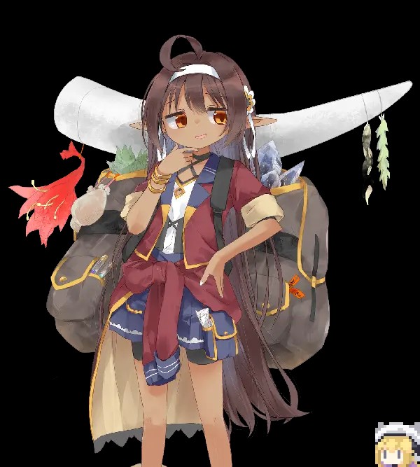 虽出身精灵之村,却因不愿归家,在魔族出没的区域过着流浪生活,靠与冒险者交易维持生计。因此她的行囊配备了野外露营所需的全套装备,背负着足有自身两三倍大的背包,她本人则穿着便于行动的冒险者装束。