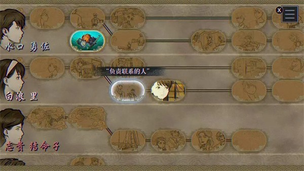 回到路线图,选择白浪里线的“负责联系的人”,选择从头开始,这次过完前置剧情进自由对话环节后不要急着对话,回头看地上有个小乌龟钥匙扣,把它捡起来再推进剧情就能进入分支“夺取”。