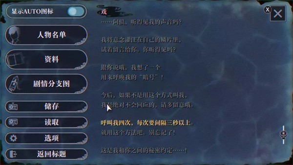 这个时候要先完整走完白浪里线的全部剧情,直到彻底了解她与水口勇佐之间的约定后。呼出游戏菜单,选择读取存档,将存档列表下拉至最底部,读取「迷雾」存档,就能获取解锁真结局的关键提示。