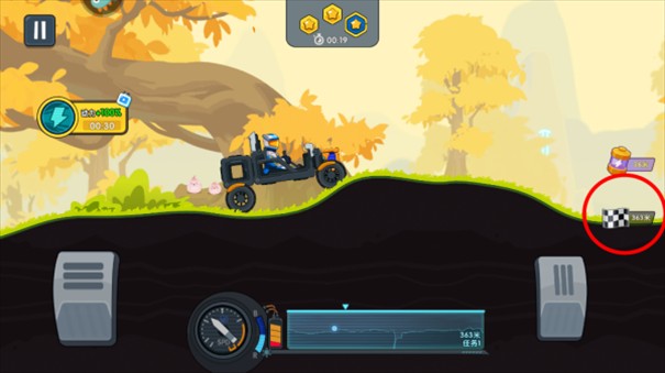 2、游戏右侧会出现一个数字与终点标志,意味着距离终点的路程。