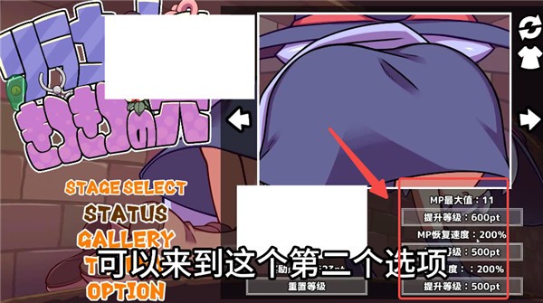 4、第二关和第一关一样右边会出现怪物会吐粘液,多出一个会弹跳的球不过从地下钻洞的触手怪消失了,打完这个关卡后可以选择第二个选项升级魔法最大值,魔法恢复速度以及充能速度,不要忘记升级了不然后面不好打。