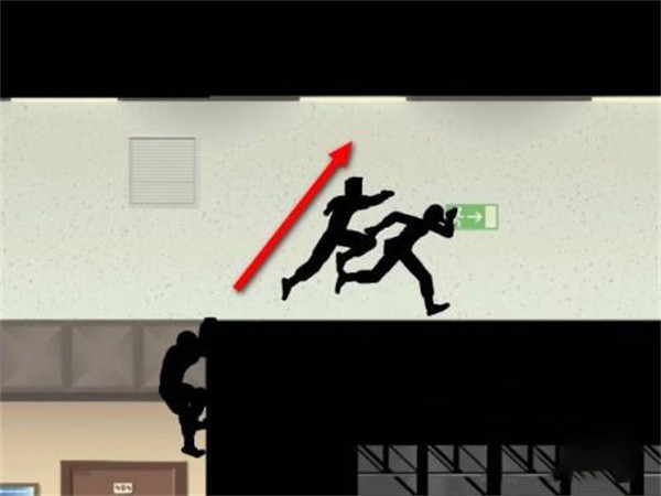 3、是图二上来后的场景,可以看到第一个人的头部前面一点有个类似窗户的东西,在人物到达窗户最左边的位置时跳一下,差不多就是帽子人现在的那个位置;