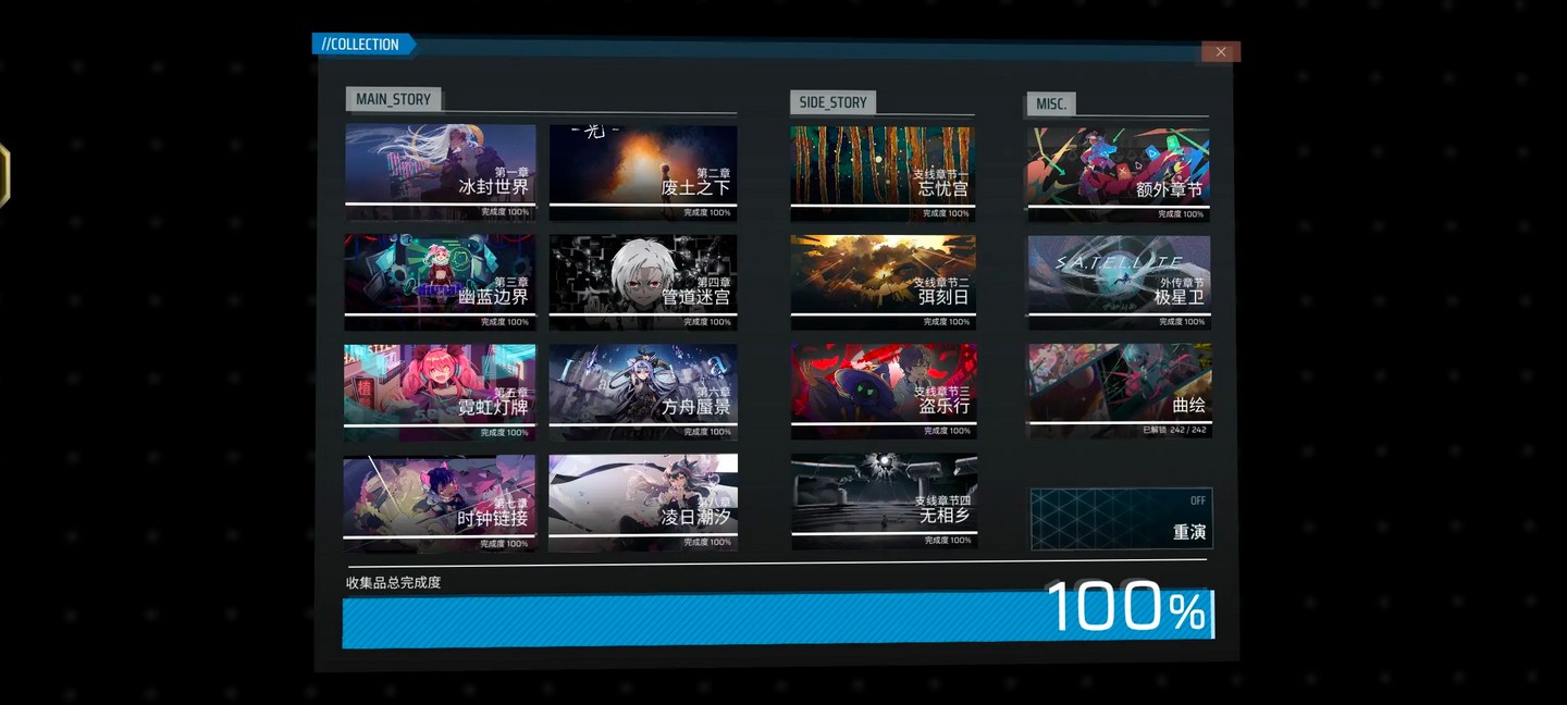 主线1~4章收藏品游玩任意所有主线曲目都能掉落