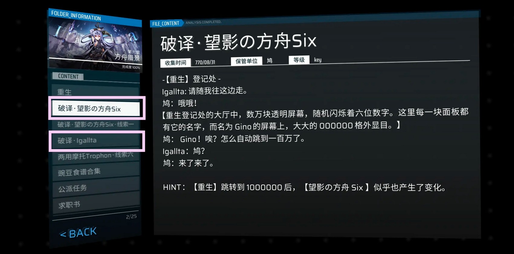 「破译·望影の方舟Six」只能通过游玩「重生」掉落且首次必定掉落,旨在帮助玩家完成魔王曲解禁前置条件