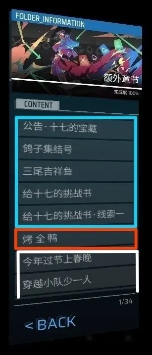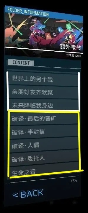 EX章节共34个收藏品,均为特殊收藏品,这34个收藏品需指定特定曲目掉落