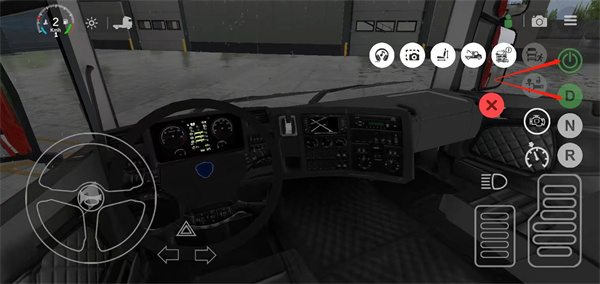 2、坐到驾驶位后,先后点击最右边【电源图标】和【字母D图标】。