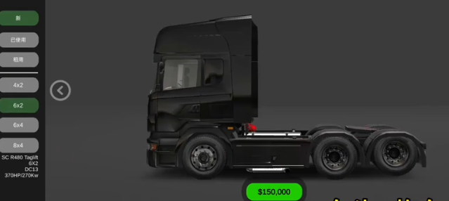 4、展厅中有许多规格的车,用户可选择4x2、6x2、6x4、以及8x4的,点击绿色按钮即可购买。