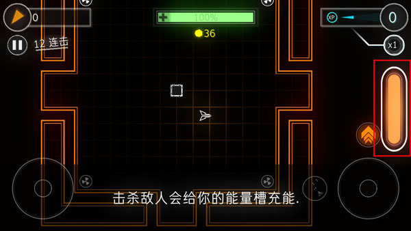 击杀敌人会为你的能量槽充能,待收集完毕之后,玩家便可使用特殊能力的强化装置,消灭更多的目标得分了。