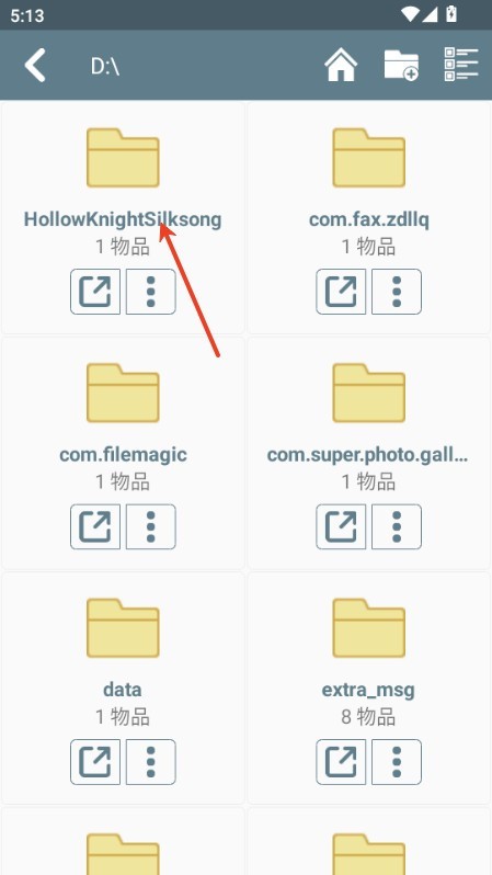 4、找到D盘选择“HollowKnightSilksong文件里的"HollowKnightSilksong.exe解压,解压需较长时间,请耐心等待;