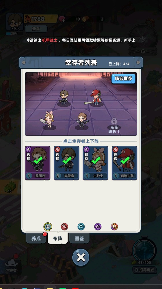 2、你可以招募属于自己的幸存者,组建小队战斗。