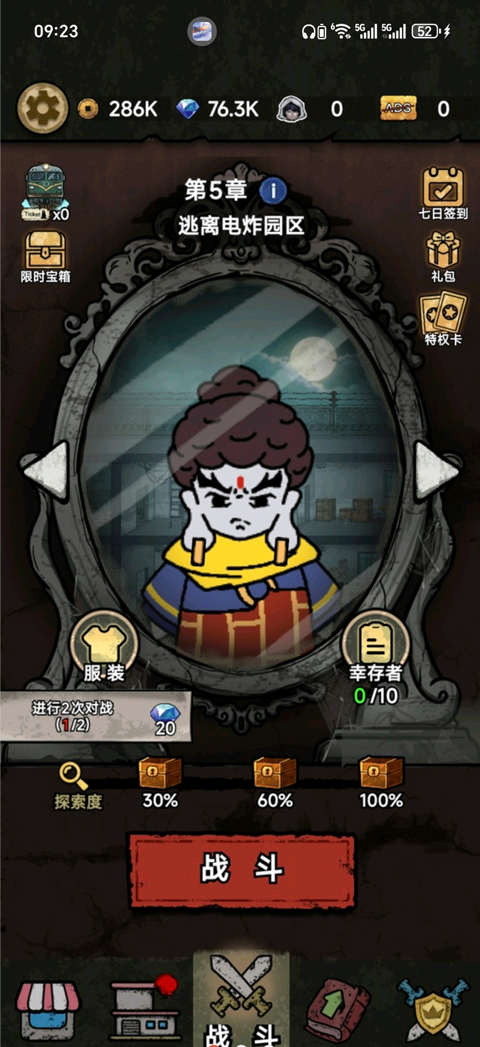 2、游戏采用章节式,点击下方战斗;