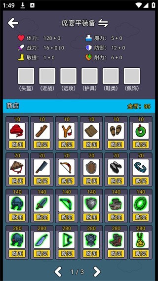 2、接着金币收集到一定的程度后可以利用这一些金币来购买装备;