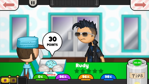 由于乔乔是美食评论家,所以得分很难,堪比其他终结者,只要做到80分以上就可以得到蓝丝带,三天有效期,顾客会给你更多小费,这个贴纸如果做得好话5周后就有了