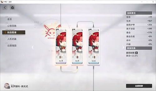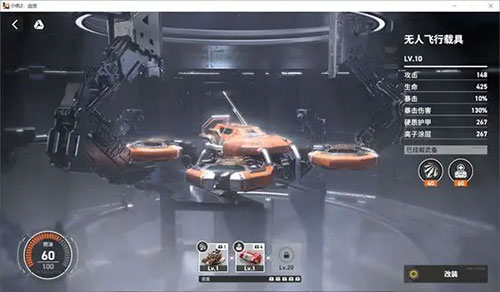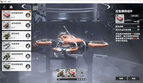 飞行载具可以消耗燃油为人形们提供一定战斗支持,载具技能随着主线通关可得到全部解锁,初始可装备一个技能,可消耗战场报告升级。随着等级提高,可分别在10级,20级再携带一个额外技能,每个技能消耗一定的载重,因此需要灵活搭配战术技能。燃油每天仅自动补满一次,其他时候需要消耗晶条加油。