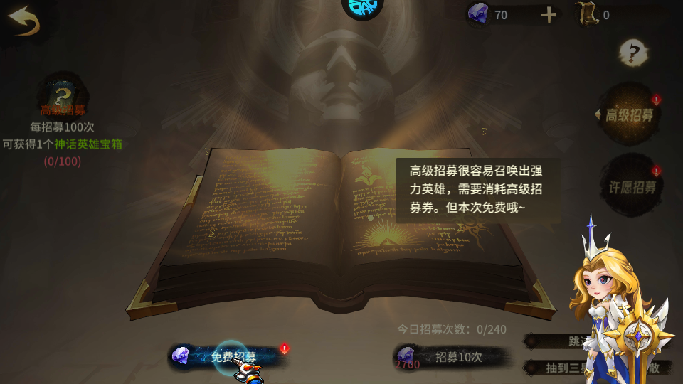 4、如果英雄角色不太够,玩家可以点击招募,招募强大的英雄为你战斗。
