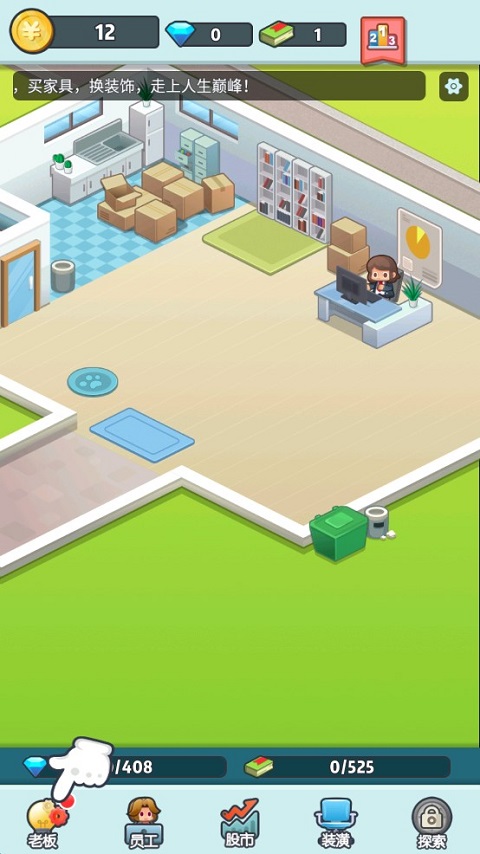 8、此外,玩家可以通过装潢来改善办公室的环境,设施的改进与完善,可以提供聘请五星员工的概率,同时带来的还包括赚钱速度等。