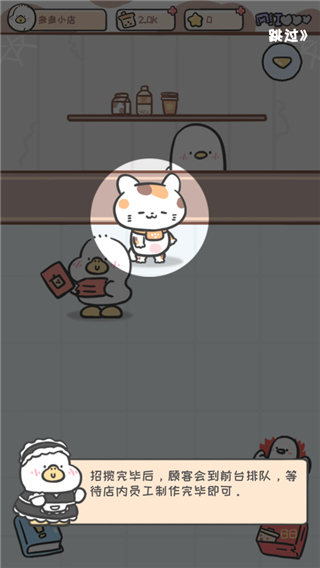 6、进入游戏后,会有员工招揽顾客,顾客也会到前台排队,直至员工制作完成,而且,整个过程是自动的;