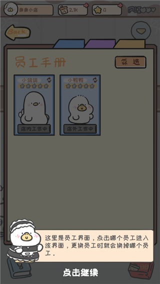 10、点击柜台的鸭子,里面是员工界面,玩家可以自定义更换员工的岗位;