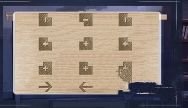 之后会找到一张如下的木板,可以忽略上面9个方块,只用记住最下面的箭头即可。