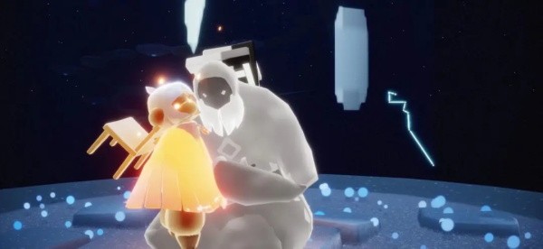找到蓝色人影并触碰它,跟随光点,我们可以看到一个深灰色的石像,点燃石像上的火苗,它就会教我们一个新的互动姿势。